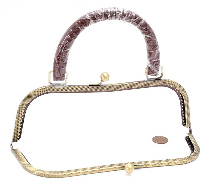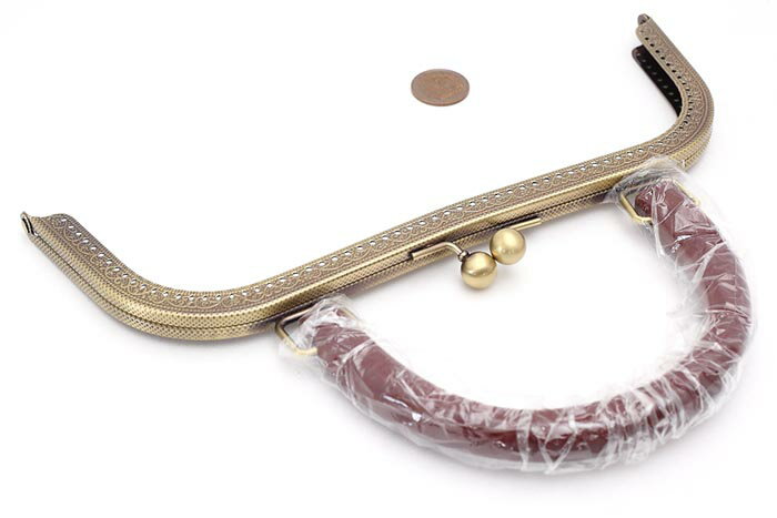 1221木製持ち手付M型 27cm がま口 口金 アンティークゴールド 穴あき・縫付タイプ カバン バッグ 鞄 同商品メール便1個まで/がま口バッグのハンドメイドに♪