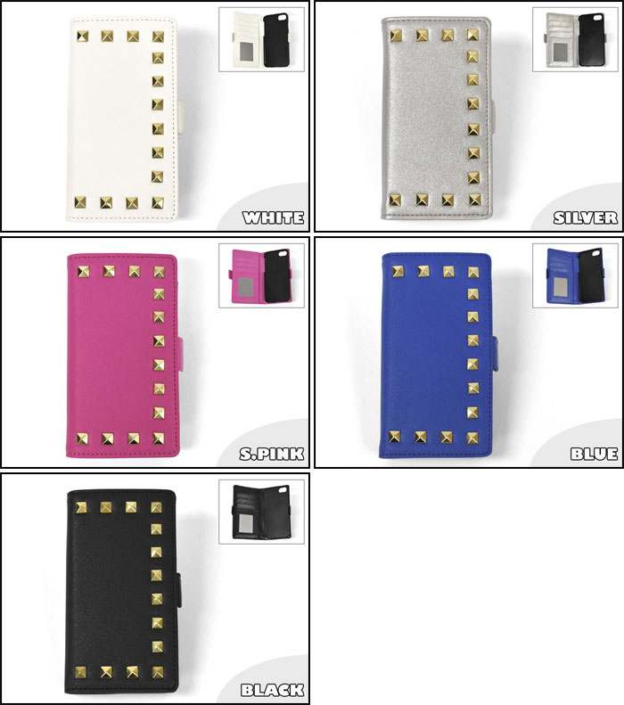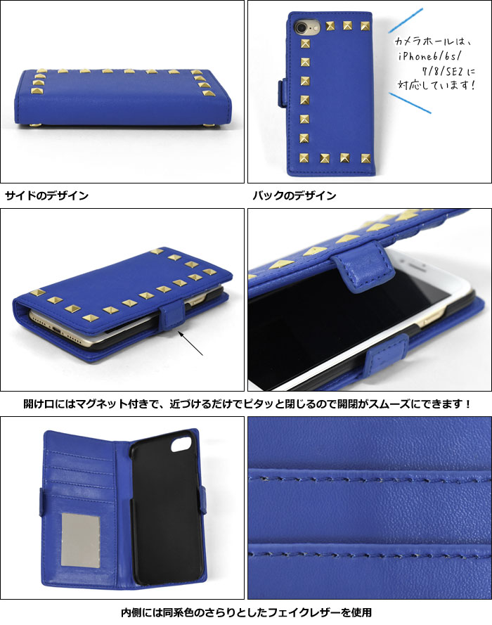 フェイクレザー スタッズ 手帳型 iPhoneケース /レディース iPhone6 iPhone6s iPhone7 iPhone8 アイフォン6 アイフォン6s アイフォン7 アイフォン8 スマホケース オシャレ かわいい 薄型 カード収納 手帳型ケース 手帳 ケース カバー ミラー付き 鏡 レザー 合皮/ p