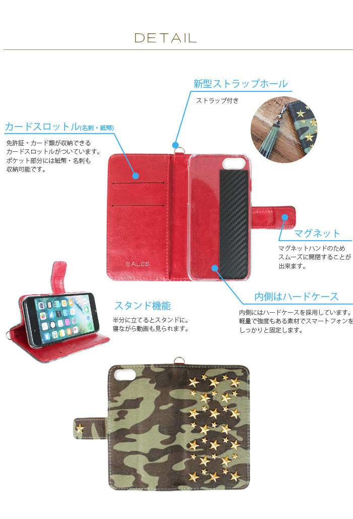 Item Information 対応機種: Xperiaシリーズ Galaxyシリーズ ARROWSシリーズ AQUOSシリーズ 素 材: デニム生地、PC(ポリカーボネート) ※ストラップ付、星スタッズ付 注意事項: ★