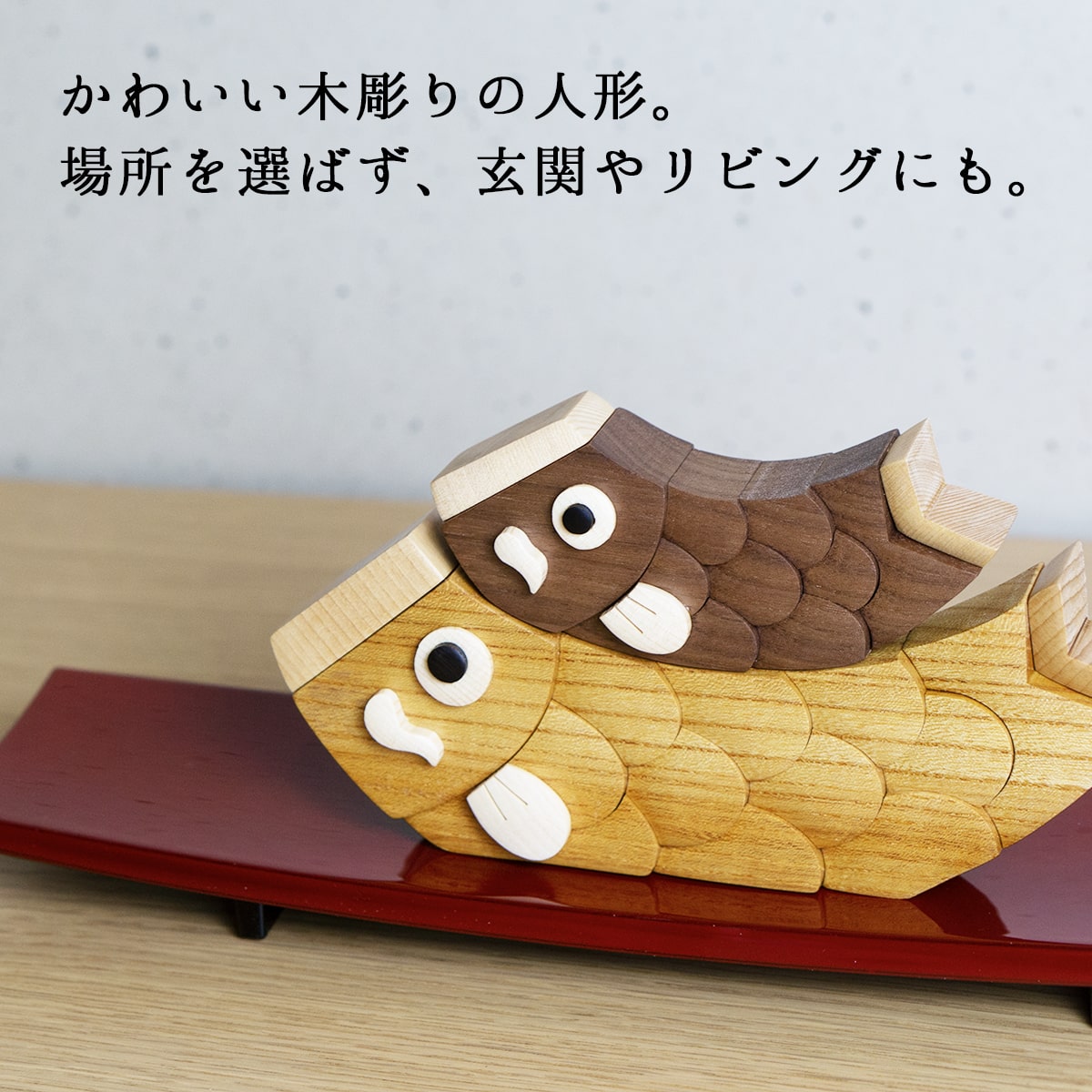 無垢の寄木が素朴な味わいのこいのぼりの置物です。