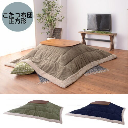 こたつ布団 正方形【メーカー直送・代引き不可】【東谷 ROOM ESSENCE】KK-141 カーキ ネイビー 薄掛け フリース ボア コーデュロイ インテリア 家具 リビング