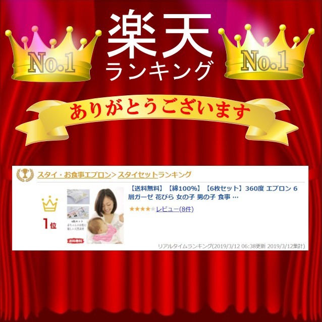 この商品は ランキング1位獲得!【送料無料】【綿100%】【6枚セット】360度 エプロン 6層ガーゼ 花びら 女の子 男の子 食事 よだれかけ 出産祝い リバーシブル【ポイント消化】 ポイント 100%天然素材 6層ガーゼ構造で通気性抜群 0-3才用 360° 6層 ガーゼ エプロン 1.素材:6重綿、綿100%の天然素材で作られとても柔らかく、 赤ちゃんの繊細なお肌に優しくつくられておりますので安心してご利用頂けます。